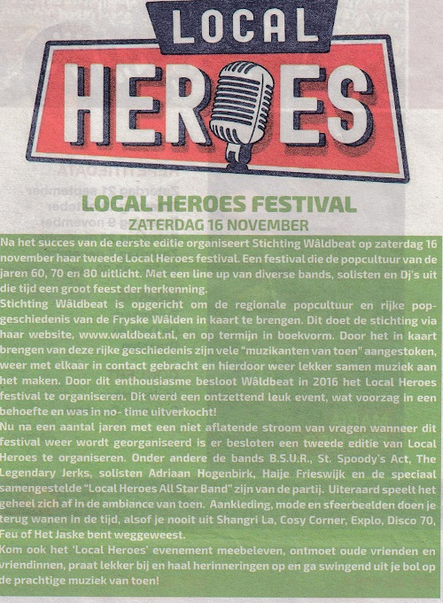 Aankondiging Local Heroes Festival in de Iduna huis aan huis krant.