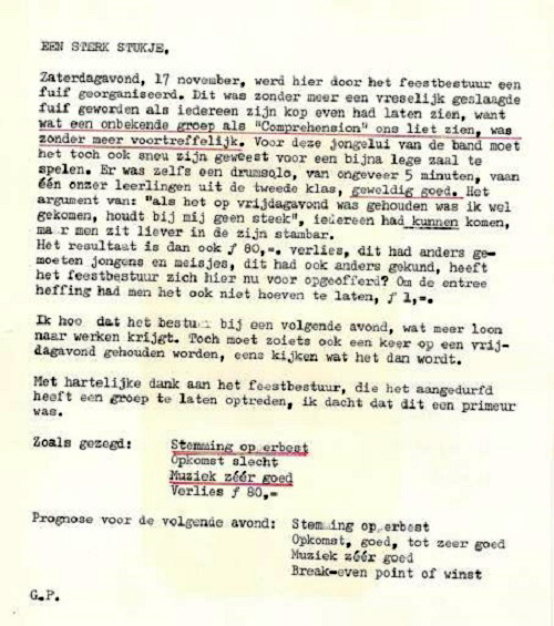 De groep Comprehension bestond van 1971 tot juli 1975 en heeft aardig wat optredens  gedaan,