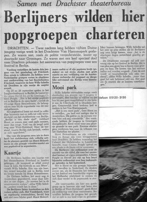 In de bijlage zit een kaartje van de Pieterson’s Blues Band, maar wat waarschijnlijk veel interessanter is, een krantenartikel over Willy met Duitse jongens.